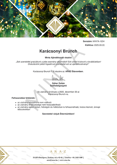 Ár: 18.900 Ft/fő, a számla végösszegéhez 12% szervizdíjat számolunk fel (Ár szervizdíjjal: 21.168 Ft/fő)